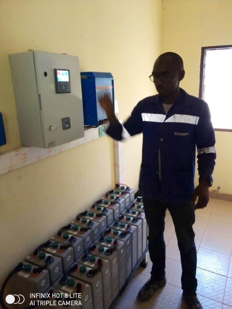 - Pose des batteries (qui sont déjà en cours de charge), mise en service et formation au CSI de Fontsa Touala lundi 8/3