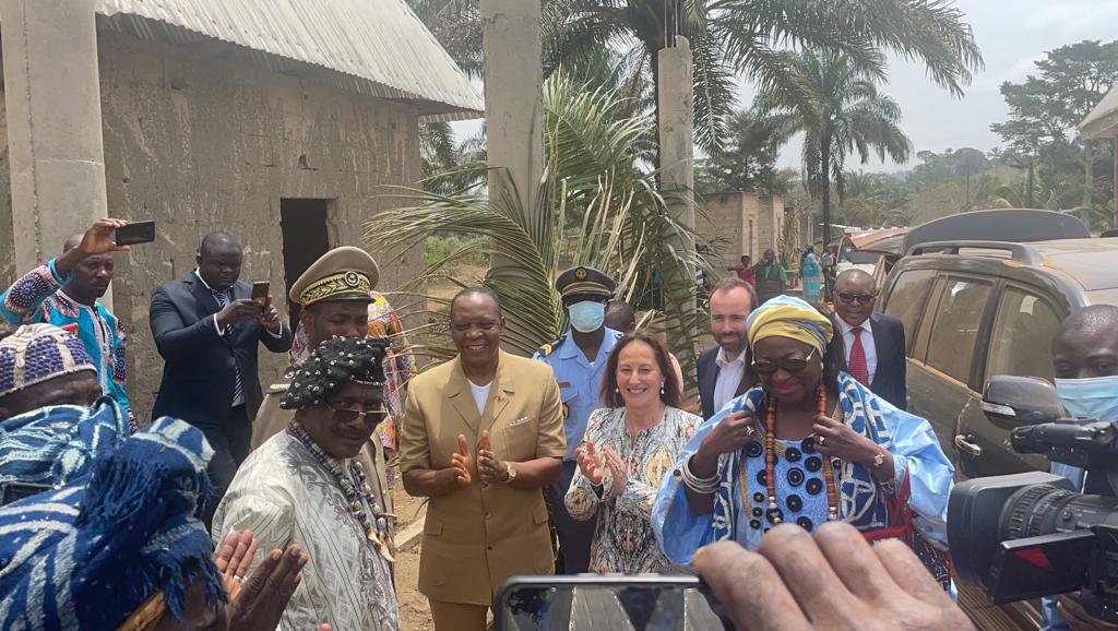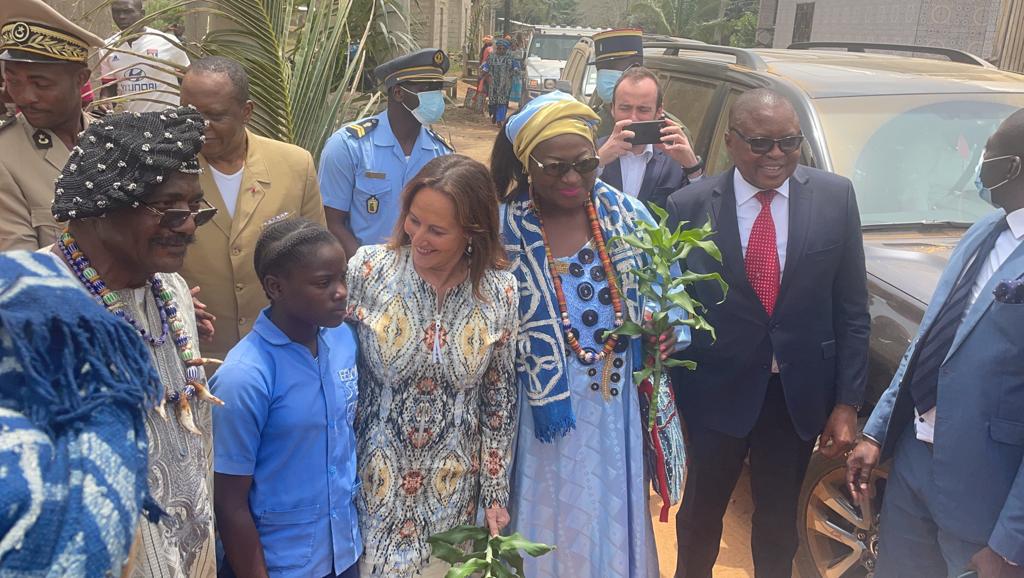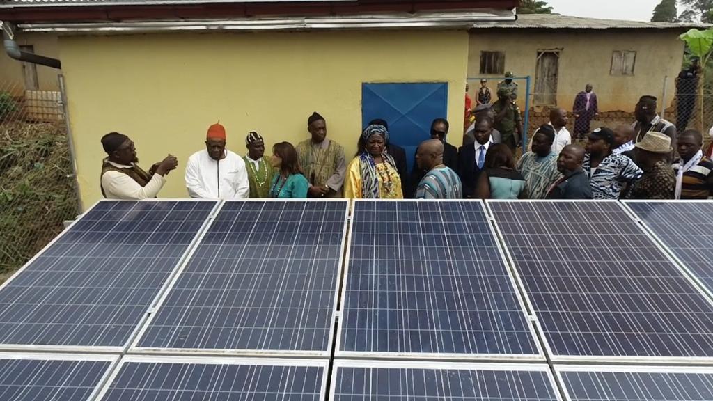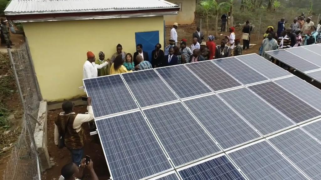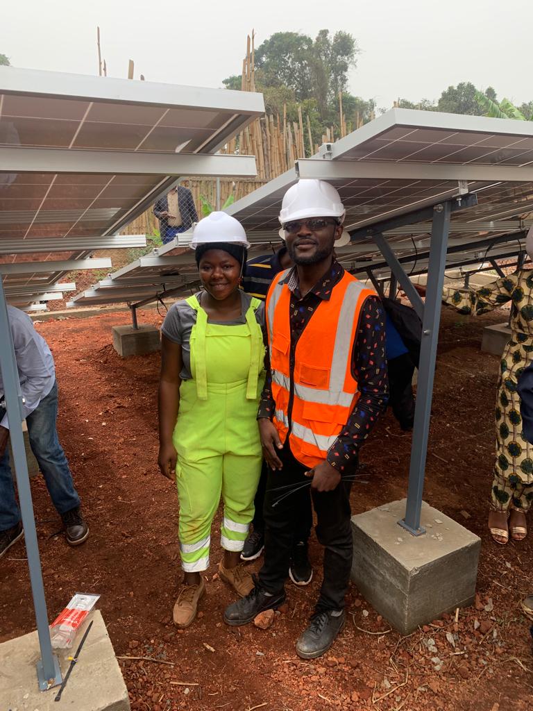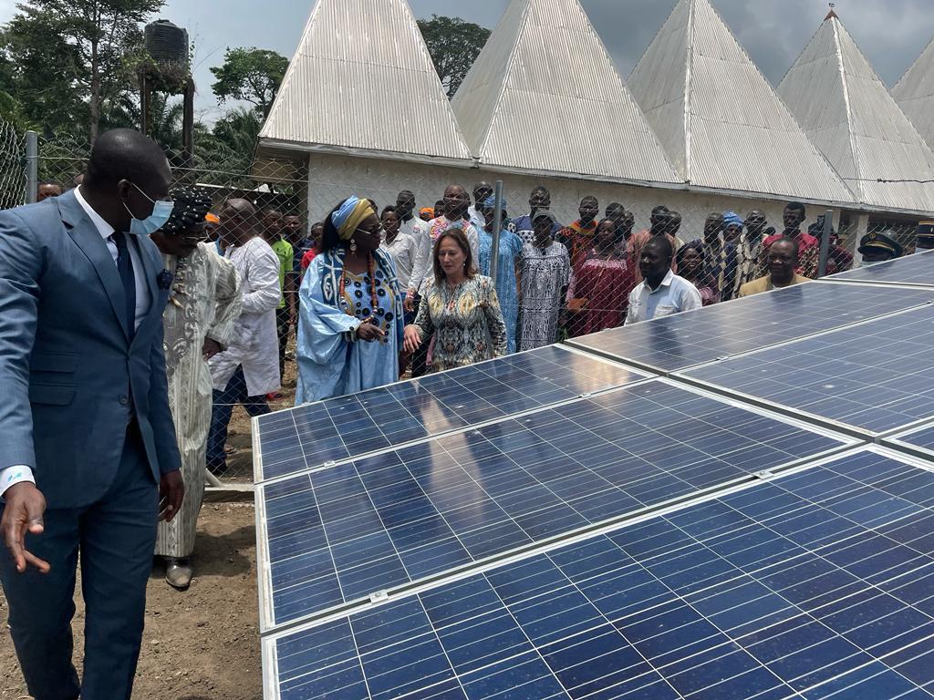 Visite des chantiers avec Célestine Ketcha Courtès pour les centrales solaires des maternités et des chefferies