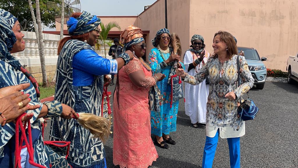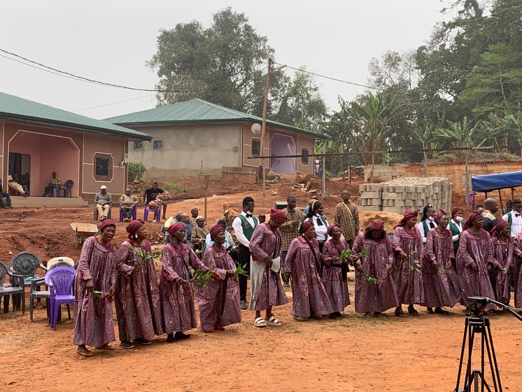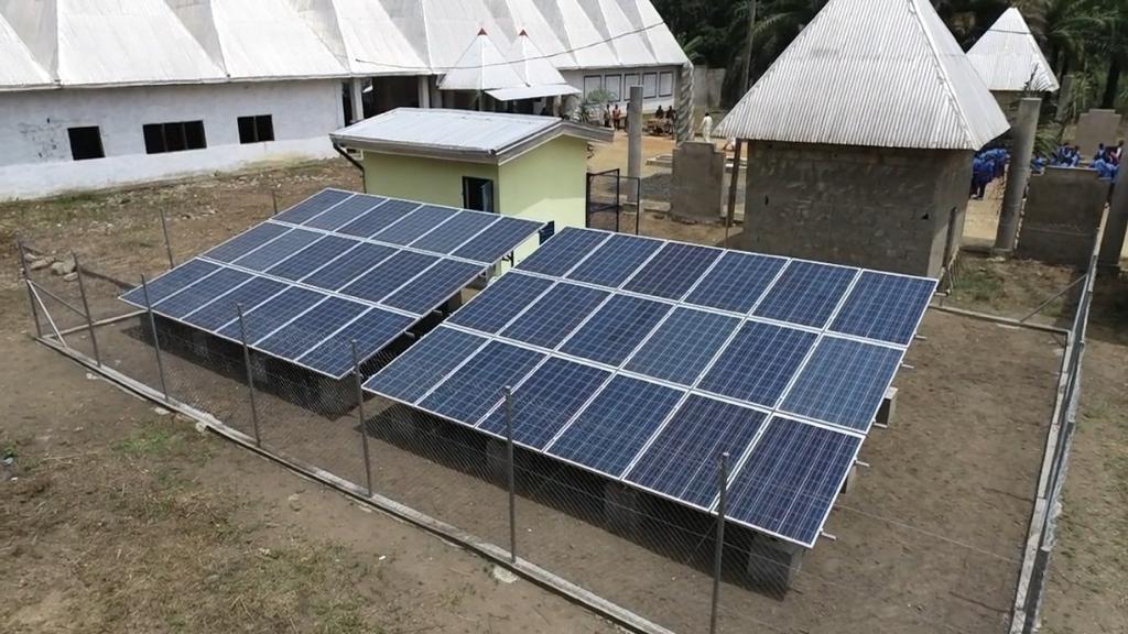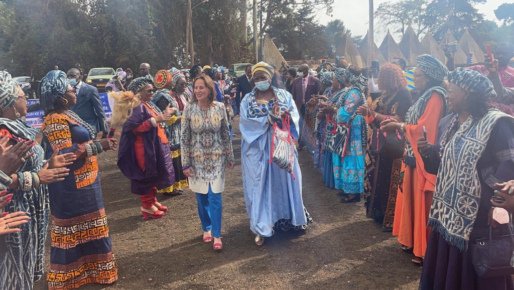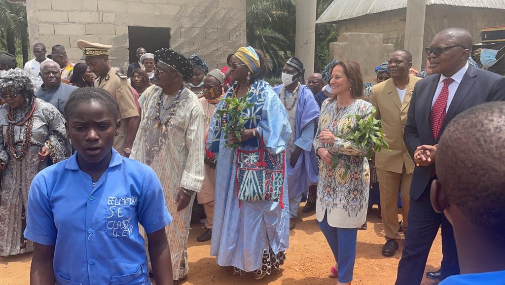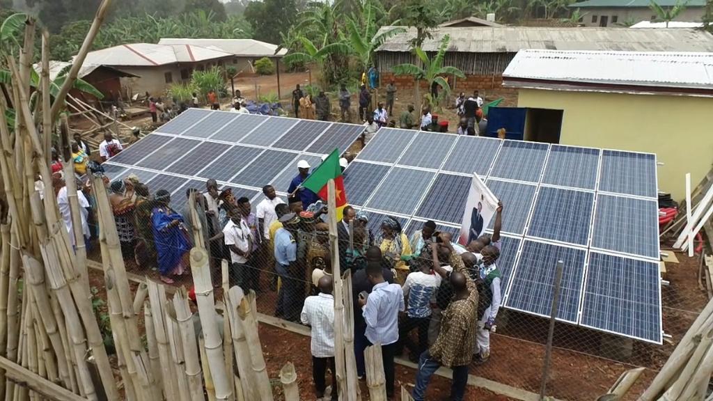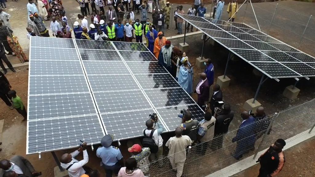 Visite des chantiers avec Célestine Ketcha Courtès pour les centrales solaires des maternités et des chefferies