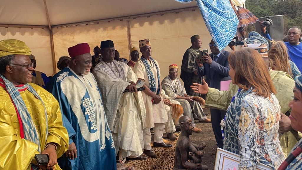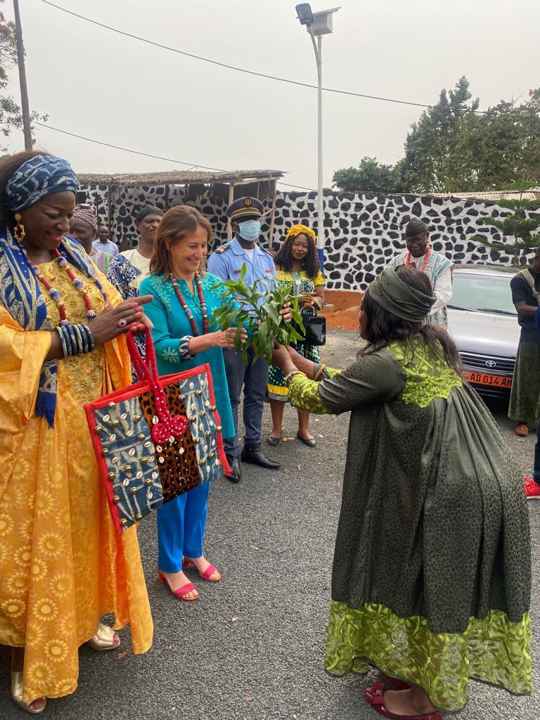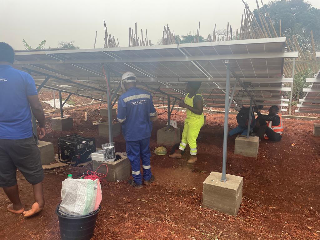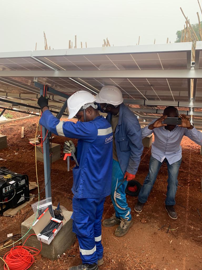 Visite des chantiers avec Célestine Ketcha Courtès pour les centrales solaires des maternités et des chefferies