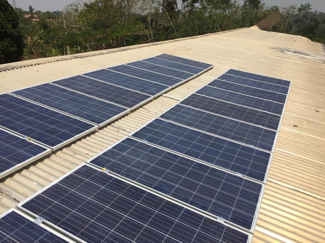 Les panneaux solaires sont posés ! Mais cela ne fait que quelques semaines et ils sont déjà poussiéreux (ce qui est logique étant donnée la proximité de la route). Ils devront être dépoussiérés très régulièrement afin qu'ils fournissent autant d'électricité que prévu.